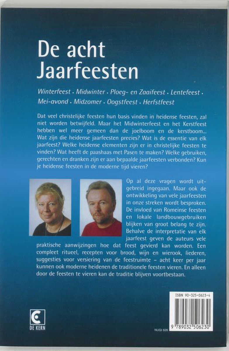 Op al deze vragen wordt uitgebreid ingegaan. Maar ook de ontwikkeling van vele jaarfeesten in onze streken wordt besproken. De invloed van Romeinse feesten en lokale landbouwgebruiken blijken van groot belang te zijn. Behalve de interpretatie van elk jaarfeest geven de auteurs vele praktische aanwijzingen hoe dat feest gevierd kan worden. Een compleet ritueel, recepten voor brood, wijn en wierook, liederen, suggesties voor versiering van de feestruimte – acht keer per jaar kunnen ook moderne heidenen de traditionele feesten vieren. En alleen door de feesten te vieren kan de traditie blijven voortbestaan.